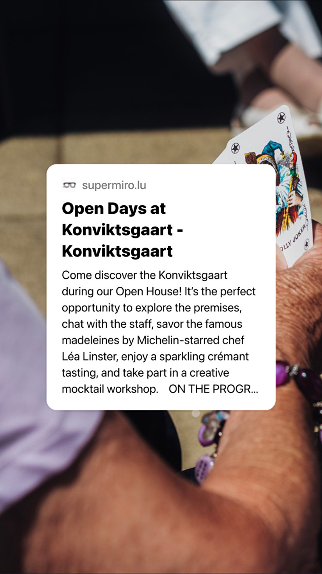 Digital art in motion 11KMHow often do you ask yourself the these questions? What can I do in Luxembourg this week-end? Where can I go-out in Luxembourg tonight? Stop asking, Supermiro gathers hundreds of events each day, and brings together dozens of spots that really suit your tastes. The more you use the service, the more Supermiro knows about you and can predict your desires and deliver tailored recommandations for you on the ‘Discover' wall. Life is good, isn't it?