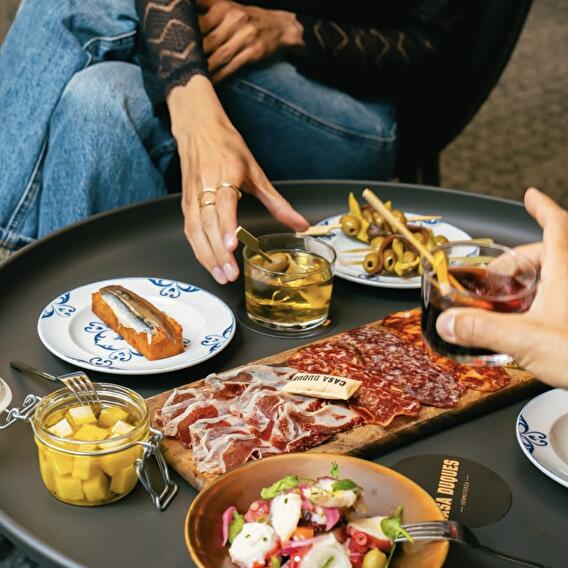 Here, vermouth takes center stage: served classic-style, reimagined as a cocktail, or paired with carefully selected flavors, it invites you to slow down, chat, and savor the moment without watching the clock. And because a good vermouth never comes alone, it’s accompanied by small bites to share: tapas, Iberian specialties, and Mediterranean flavors... There’s nothing more typically Spanish than that!