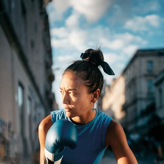 She has the look of a fighter. Punch, rage, insolence. Alone on stage behind a punching bag she hits regularly, Julie Duval performs her own story in every tone, through all her voices: her mother, her father, her sister, her childhood friend from the South, her teachers, her coach… In The Smell of War, she prepares for her first boxing championship after going through countless struggles, ending her studies too early, and fleeing to Paris to pursue theatre. Between two kicks, she tells a story full of anger that is also a warm survival guide. After a triumphant run at the Avignon Festival, this physically intense and sharply humorous show sends stereotypes flying and powerfully raises the voice of a young woman of today.