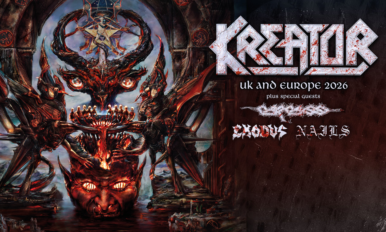 Metal Titans KREATOR have announced that their sixteenth studio album, "Krushers of the World", will be released on January 16th, 2026 via Nuclear Blast Records. Following the recent releases of the KREATOR documentary film "Hate & Hope" as well as "Your Heaven, My Hell", the autobiography of frontman Mille Petrozza, "Krushers of the World" will be the next step in the evolution of KREATOR – a band that is still at its peak more than forty years into their career. This title is not shy; it is a statement, an expression of pride and self-awareness, knowing how long and hard the band’s path has been and what they still have to say and share with their ever-growing following. After the buzz surrounding the movie and book, it is time for KREATOR to let the riffs, roaring vocals, and thunderous drums do the talking.