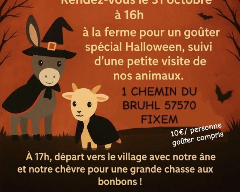 • 2025-10-31 16:00:00 2025-10-31 17:00:00 Europe/Paris Halloween Day Halloween snack and candy hunt at the Ferme du Bruhl. Fixem, France MOSL - Moselle Sans Limite