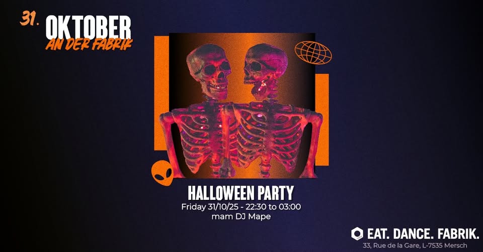 The event is free, with entry allowed only for individuals older than 18 years. Venue address: EAT. DANCE. FABRIK., 33 Rue de la Gare, L-7535 Mersch.