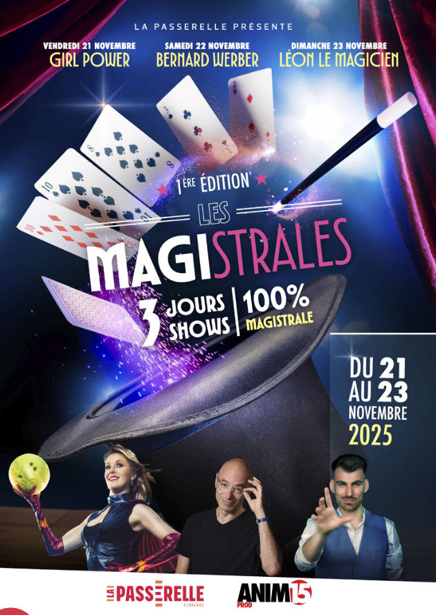 • 2025-11-21 2025-11-23 Europe/Paris The Magistrales – 1st Edition Friday, November 21: Girls Power – Magic show Saturday, November 22: Bernard Werber – Solo performance Sunday, November 23: Leon the Magician – Magic show 134 Grand Rue, 57190 Florange, France Ville de Florange