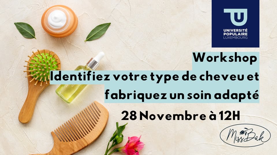 Do you want to understand your hair and provide it with a tailored treatment? This workshop is for you! Open to all beginner adults, it will help you better understand your hair type and create a personalized hair care treatment, 100% natural.