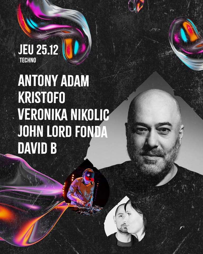 As every year, Music Factory hosts its Christmas with Friends featuring guests Antony Adam and David B. This includes performances by Kristofo, a key figure in the techno scene, and Veronika Nikolic with John Lord Fonda, renowned figures in French electronic music. The live performances include vibrant techno with experimental and powerful beats, alongside DJ sets by Antony Adam and David B.