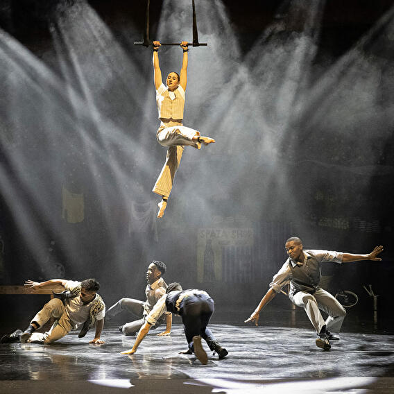 Aerial straps, trapeze, Cyr wheel, juggling, and backflips: 10 artists from South Africa unleash themselves in a liberating, acrobatic, and colorful burst of energy. Moya proudly showcases the footwork of two lively, hopeful dances born from resistance to apartheid: gumboot, inherited from enslaved workers who tapped on their rubber boots in the mines, and pantsula, a kind of house dance that emerged from the Black townships of Johannesburg.