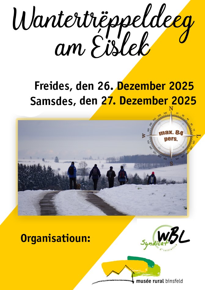 Join this special winter walking day in the Éislek, scheduled for December 27, 2025. Be part of this wonderful adventure!