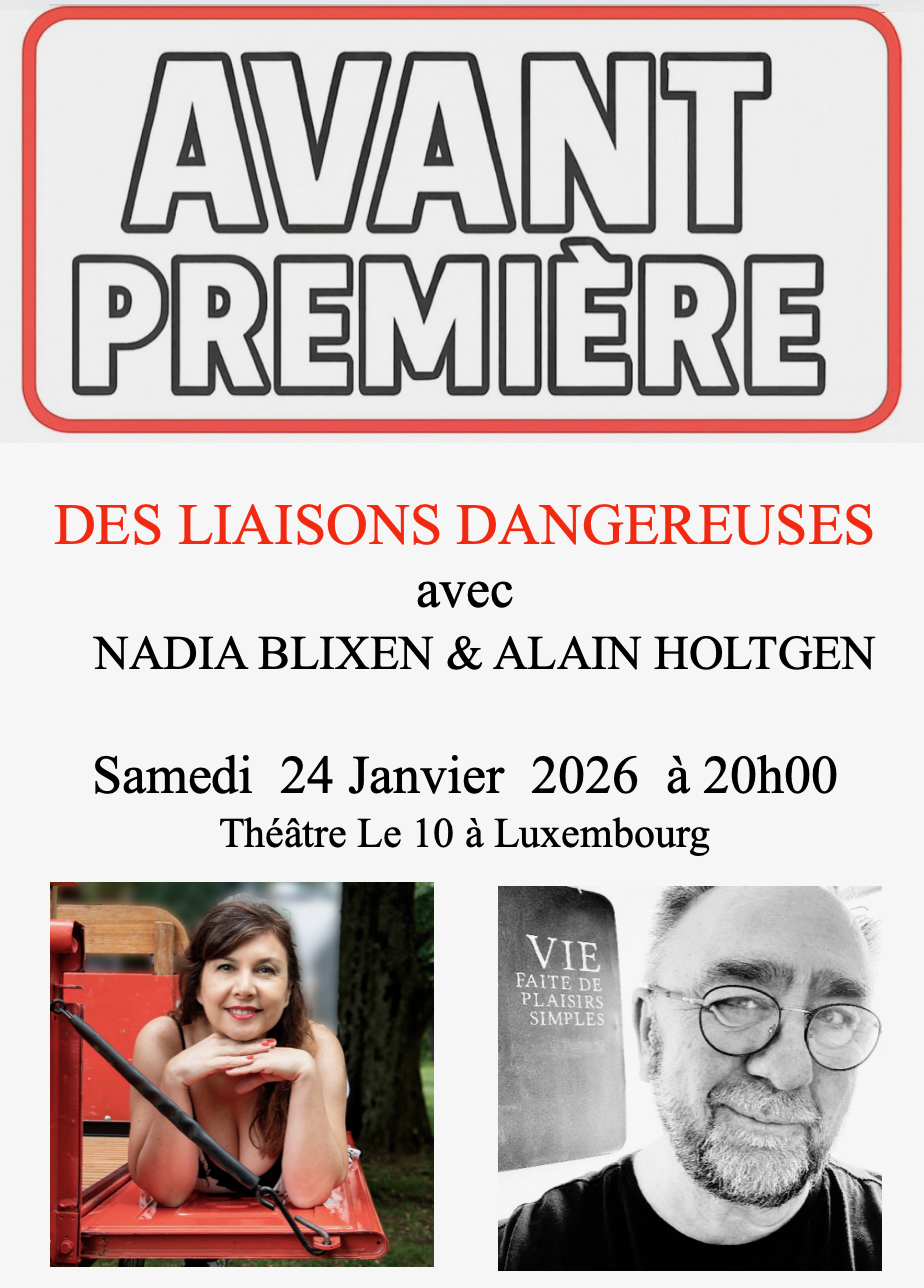 The theme of the third edition of AVANT PREMIÈRE is... Des Liaisons Dangereuses! From the adventures of Laclos and the epistolary relationships between Marquise Isabelle de Merteuil and Vicomte de Valmont to scenes inspired by modern life, featuring characters leading astonishing and dangerous lives. The actors are Nadia Blixen and Alain Holtgen.