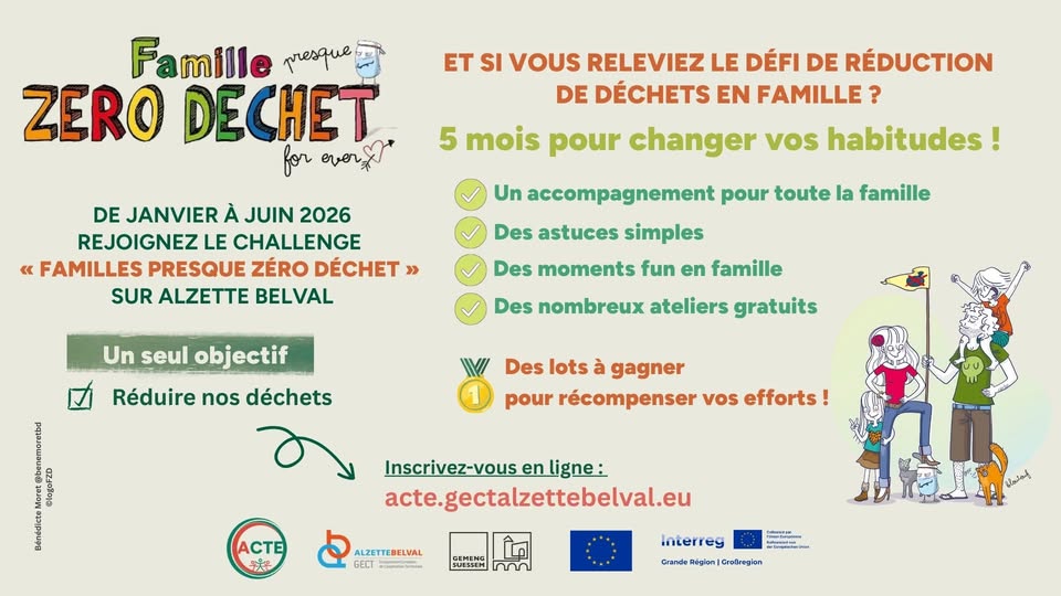Do you want to reduce your waste but don't know how? Join the "Almost Zero Waste Family Challenge"! As part of the INTERREG ACTE program.