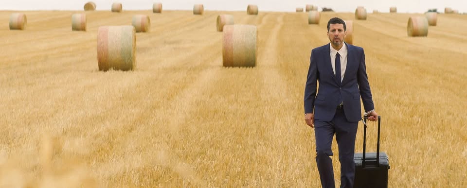 Animal Totem by Benoît Delépine, with Samir Guesmi, Olivier Rabourdin, Solène Rigot. From Beauvais airport to La Défense, accompanied by his rolling suitcase, Darius crosses the countryside and suburbs on foot to complete a mysterious mission, leaving no carbon footprint.