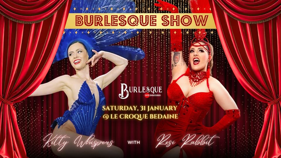 • 2026-01-31 18:30:00 2026-01-31 19:30:00 Europe/Paris Burlesque Luxembourg's January Show Enter the beautiful world of Burlesque with an intimate night of performance at Croque Bedaine in Limpertsberg. We're delighted to welcome special guests Kitty Whispers and Rosi Rabbit! Get your tickets now for a night of tease you won't soon forget! 139 Avenue du bois Luxembourg, Luxembourg Burlesque Luxembourg