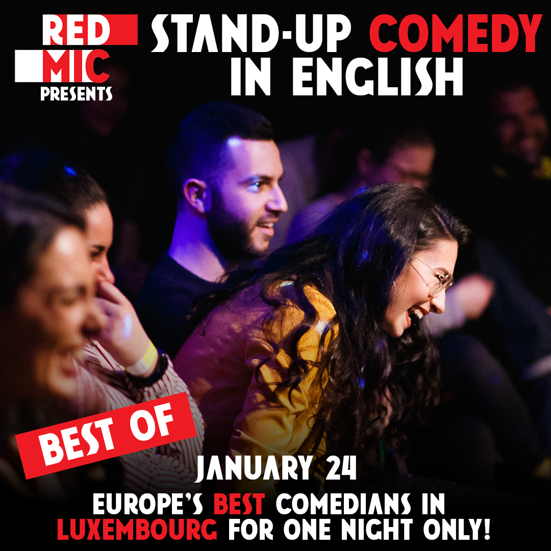 • 2026-01-24 21:00:00 2026-01-24 22:45:00 Europe/Paris RED MIC - Stand-up Comedy in English Red Mic is bringing the best comedians from around the globe to Luxembourg for one night only! Six amazing comedians will give you their best jokes. Performers will be announced later, but Red Mic exclusively books top acts, including award-winning comedians with television credits (BBC, Comedy Central, etc.) and rising new talent. 65 Rue du Fort Neipperg, 2230 Gare Luxembourg Carlitos Comedy Club