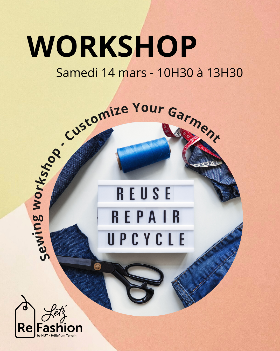• 2026-03-14 10:30:00 2026-03-14 13:30:00 Europe/Paris Sewing Workshop – Customize Your Garment Bring a garment and leave with a one-of-a-kind piece – customize it your way. Give a second life to a garment you no longer wear during this clothing customization workshop. Bring your own piece (jacket, shirt, jeans, tote bag, sweatshirt…) and learn how to transform it into something unique. During the workshop, you'll discover several patch-free customization techniques, such as: - Fabric appliqué - Simple decorative embroidery - Adding pockets or textile details - Decorative stitching 8-10 Rue Genistre, 1623 Ville-Haute Luxembourg Lët'z Refashion by HUT