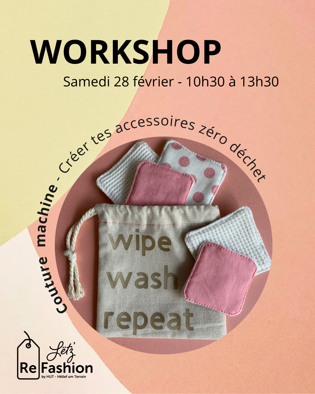 Take part in a sewing workshop and make a zero waste accessory, useful and durable, using a sewing machine. Learn the basics of sewing (reusable wipes and small pouch) in a friendly atmosphere. The workshop is open to all levels, with step-by-step guidance from fabric selection to the final stitches.