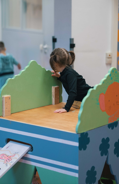 Whether it's small huts, boxes, boards, building blocks, or wheelbarrows – everything is ready! Children can build, stack, and create as they wish.
