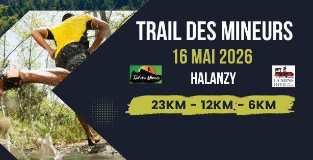 • 2026-05-16 2026-05-16 Europe/Paris Trail des Mineurs Several courses are offered: - 23 km (+/- 700m elevation gain) - 12 km (+/- 340m elevation gain) - 6 km (+/- 210m elevation gain) Rue Haute 22, 6791 Aubange, Belgique Ville d'Aubange