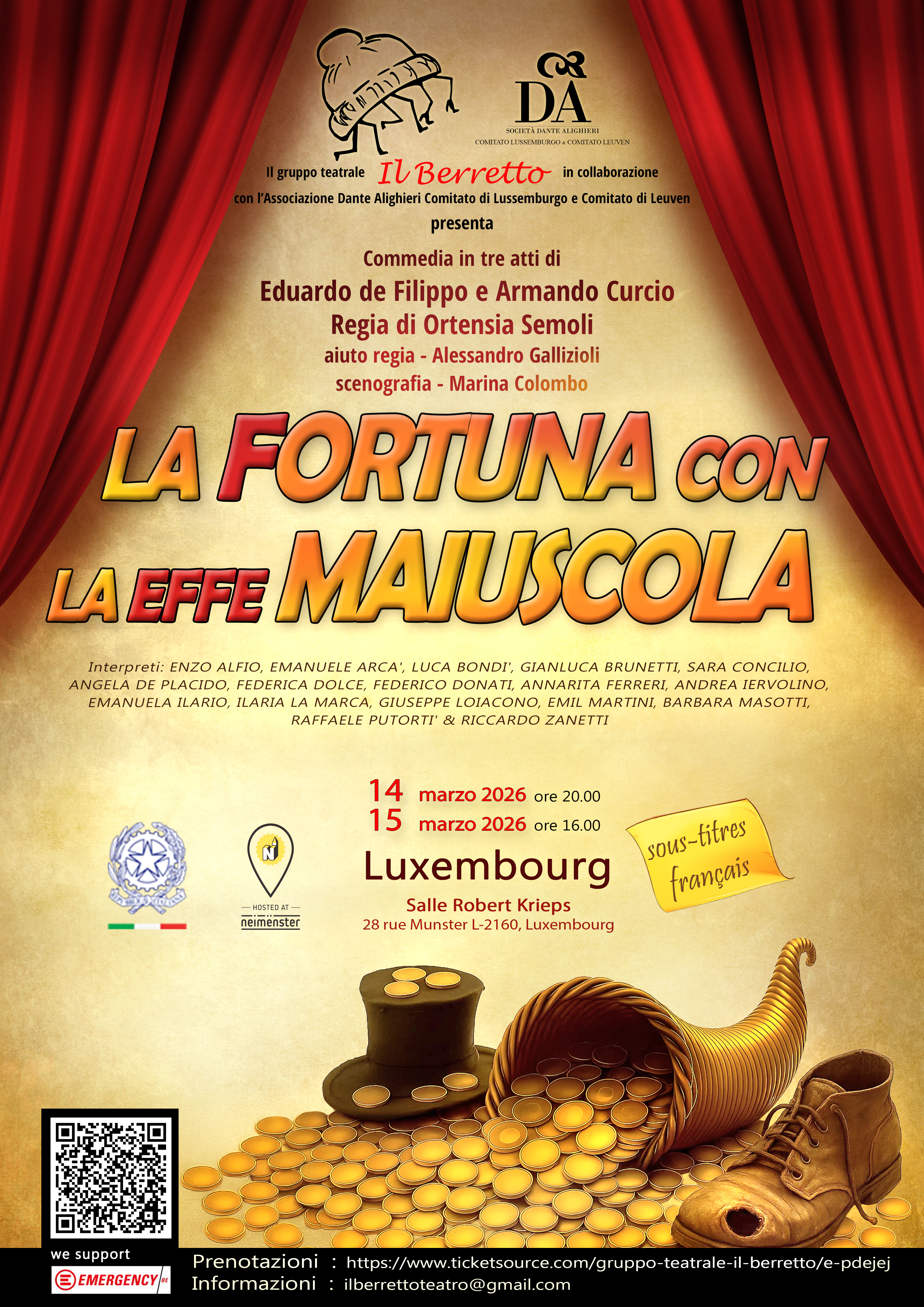 The comedy "La fortuna con la EFFE maiuscola" by Eduardo De Filippo and Armando Curcio is a captivating comic drama set in post-war Naples. With humor and irony, it tells the story of a modest family struggling with poverty, misfortune, and an unexpected inheritance that will change their destiny.