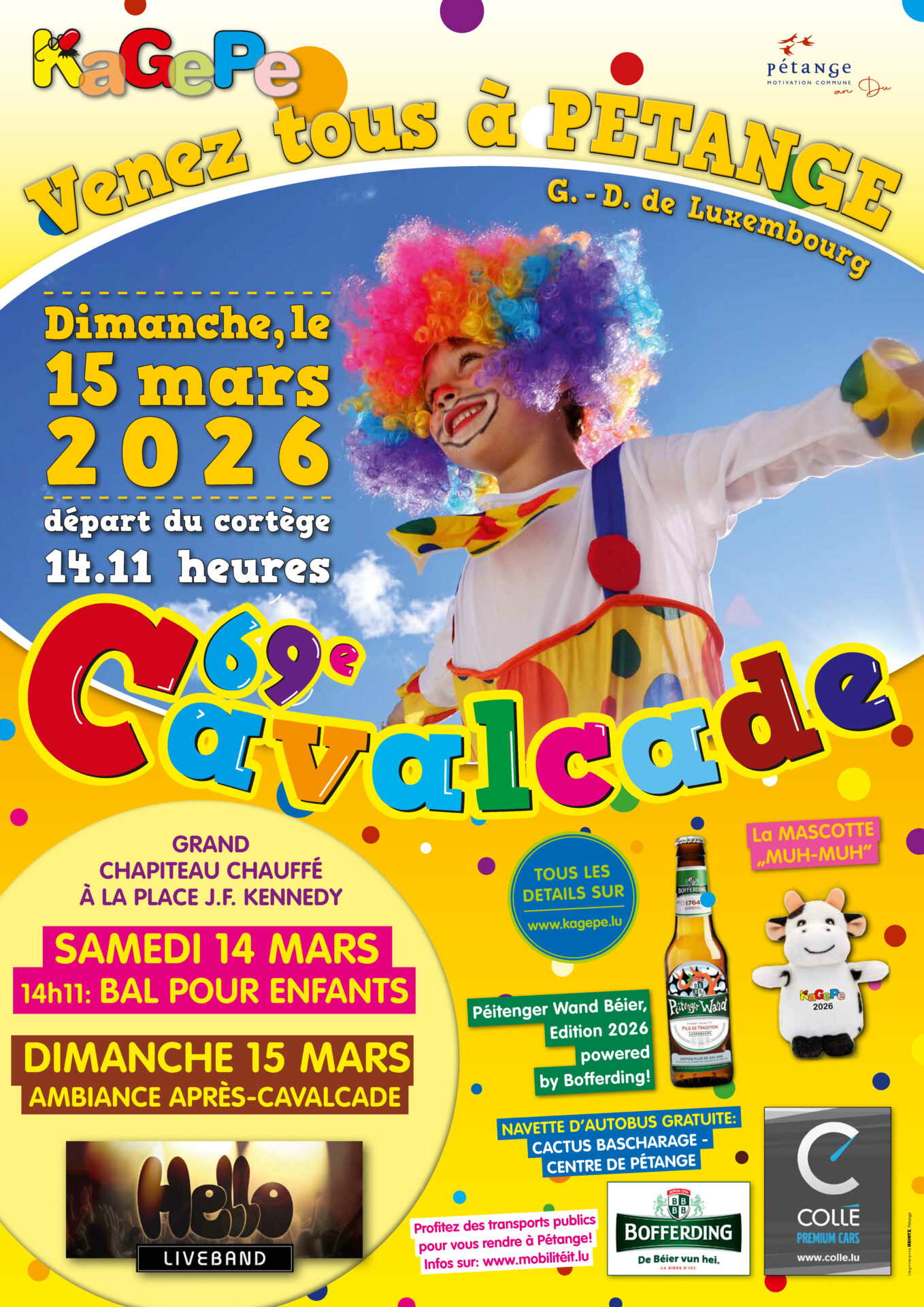 • 2026-03-15 14:00:00 2026-03-15 15:00:00 Europe/Paris 69th Cavalcade of Pétange 69th Cavalcade of Pétange Pétange, Luxembourg Commune de Pétange