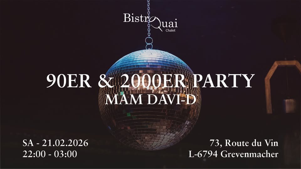 On February 21st, get ready for our 90s & 2000s party at Quai Chalet with DJ DEE! From 10:00 PM, we'll bring you the best hits from the 90s and 2000s.