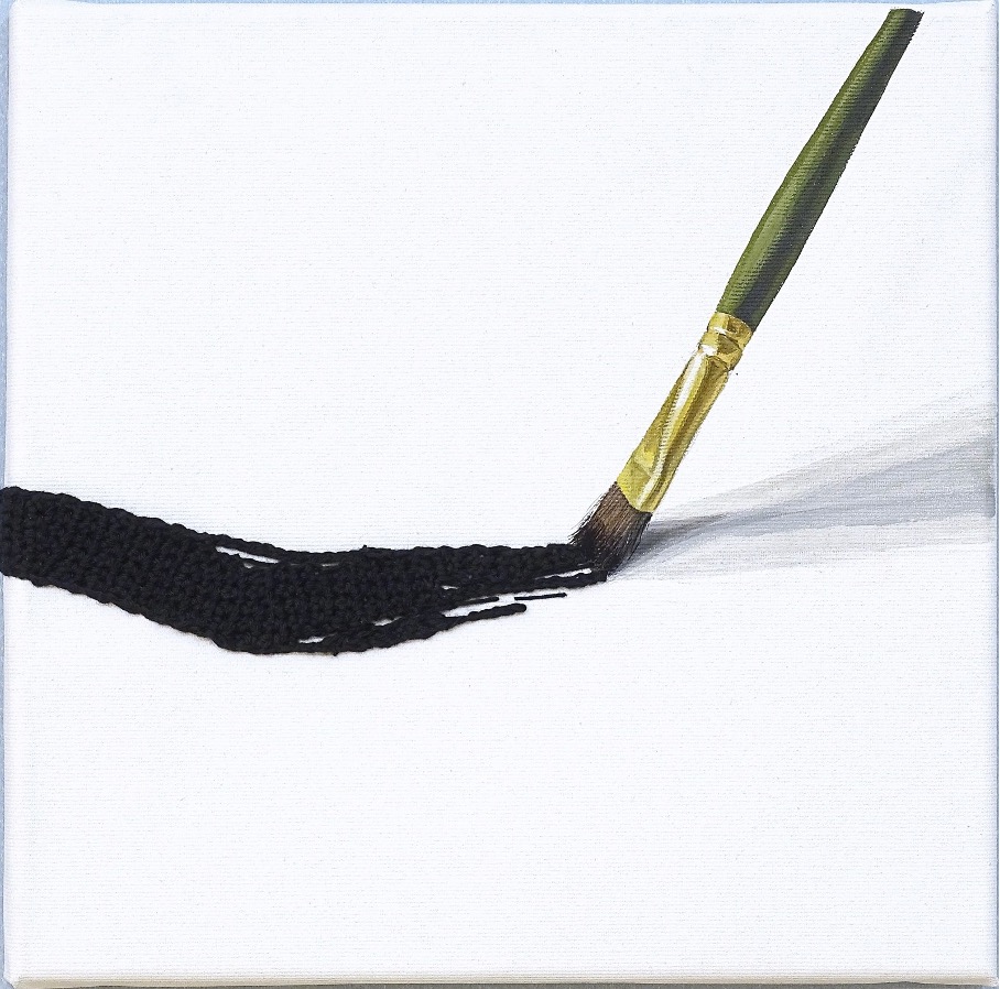 In the Line Scape series, the artist replaces the brush with thread and hook. Loop after loop, she constructs a line that evokes the spontaneous gesture of drawing, while revealing a slow and reversible process. What appears to be an immediate brushstroke is actually made up of hundreds of stitches, which can be undone and redone. The artist is interested in pictorial illusion and the notion of surface: is it really two-dimensional? By diverting the properties of the material, she explores the tension between drawing and sculpture, surface and volume, where oppositions cease to be fixed.