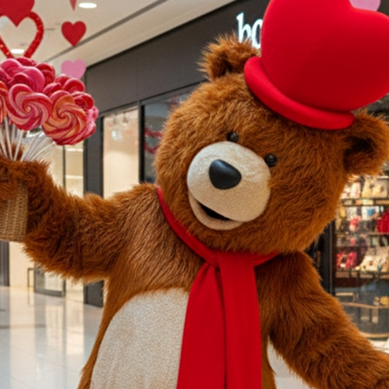 Our adorable Carillon Bear, dressed as Cupid, will be strolling through the center to the delight of visitors. He will be handing out heart-shaped lollipops and sharing lovely moments with children and adults alike.