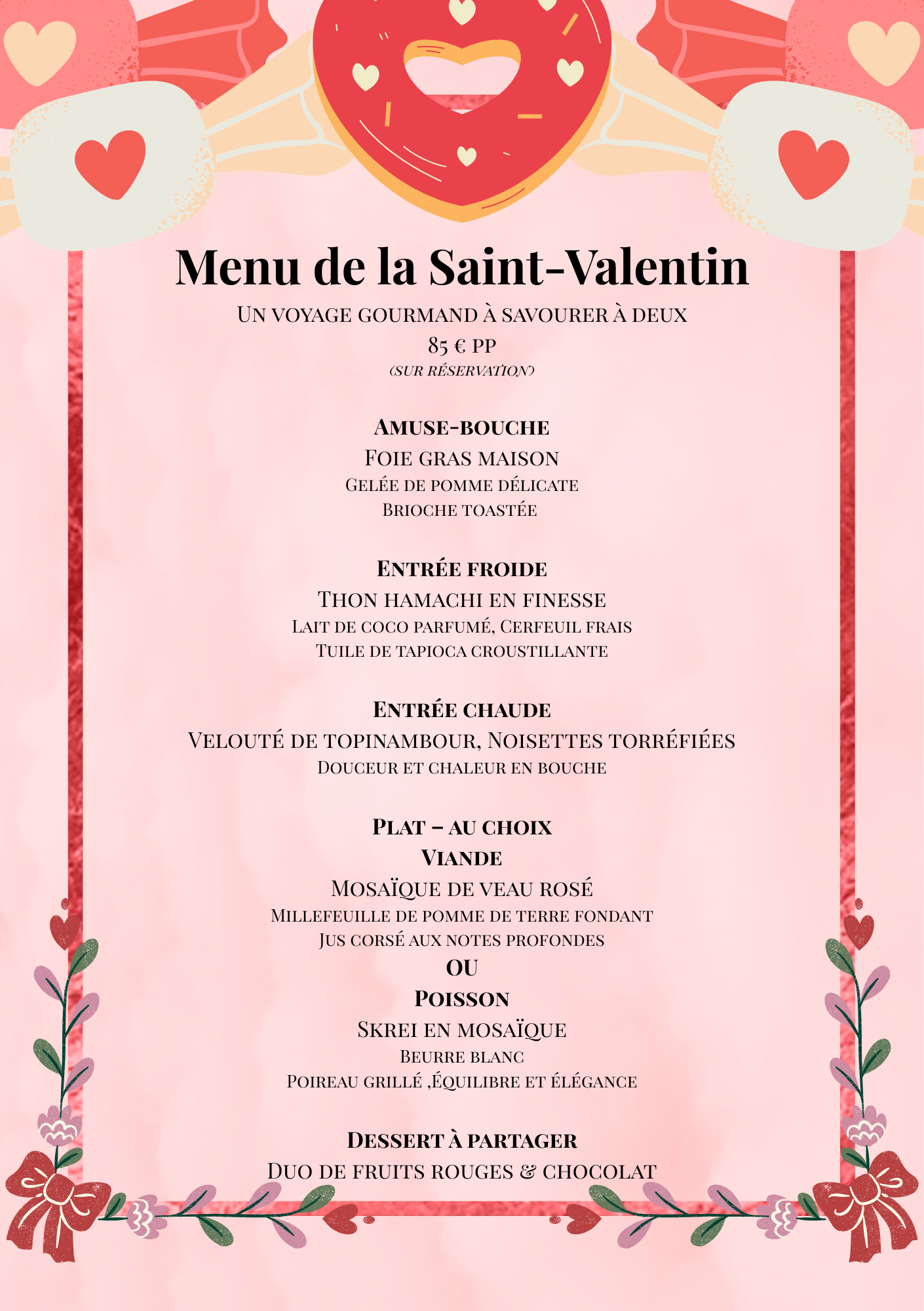 Here is a very indulgent, yet delicate menu to delight your loved one.