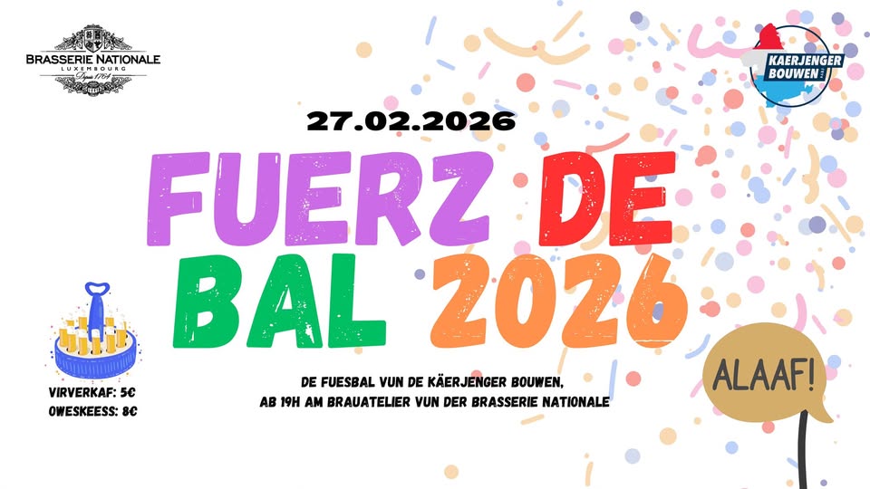 On February 27th, join us for the Fuerz de Bal 2026 event in our new venue: the Brauatelier at Brasserie Nationale in Käerjeng, where you can also find us for afterwork events.