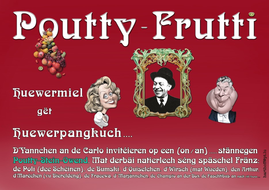 On the 70th anniversary of Poutty Stein's death, the two renowned Luxembourgish artists Yannchen Hoffmann & Carlo Hartmann present a spectacular show featuring the author's best songs and poems.