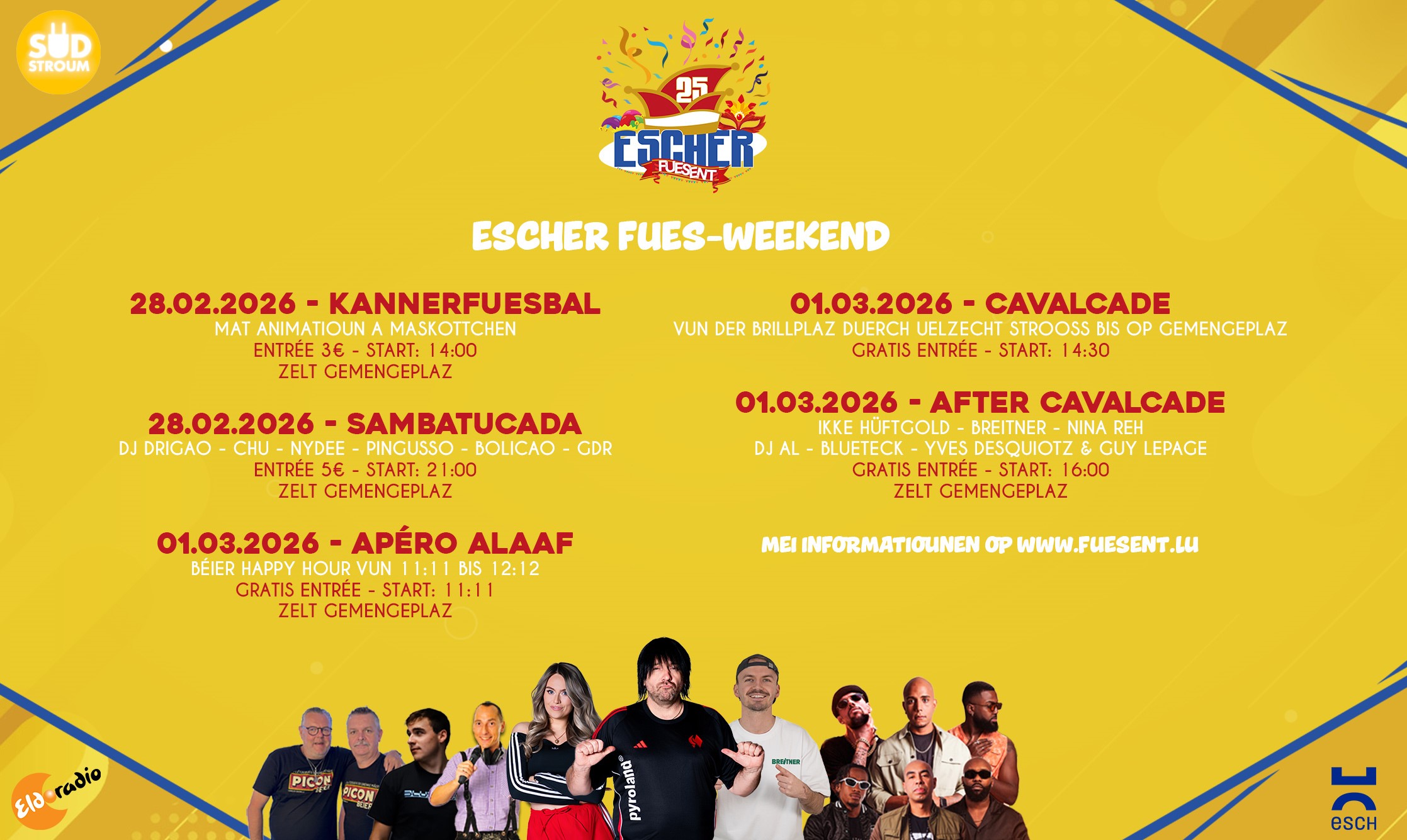 Esch city centre will be buzzing from February 27th to March 1st for the 25th edition of the Esch Cavalcade 🎭! Three days of colours, music and laughter for young and old.