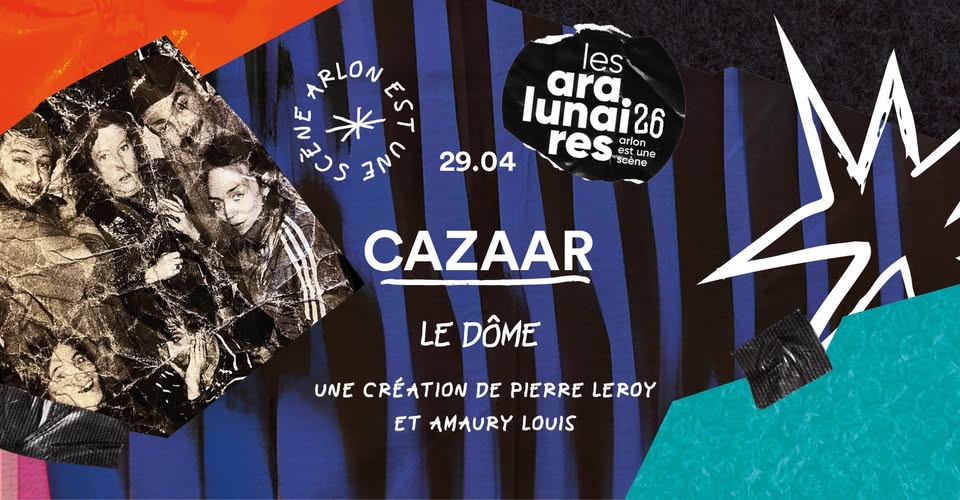 On stage, the text of Cazaar is read aloud and interspersed with original pieces, performed by Amaury and Pierre, alongside other well-known figures of the Walloon scene: Audrey Marot (Annabel Lee), Aurélien Auchain (Mountain Bike), Catherine De Biasio (Blondy Brownie), and Flora Morelle (DC Lou).