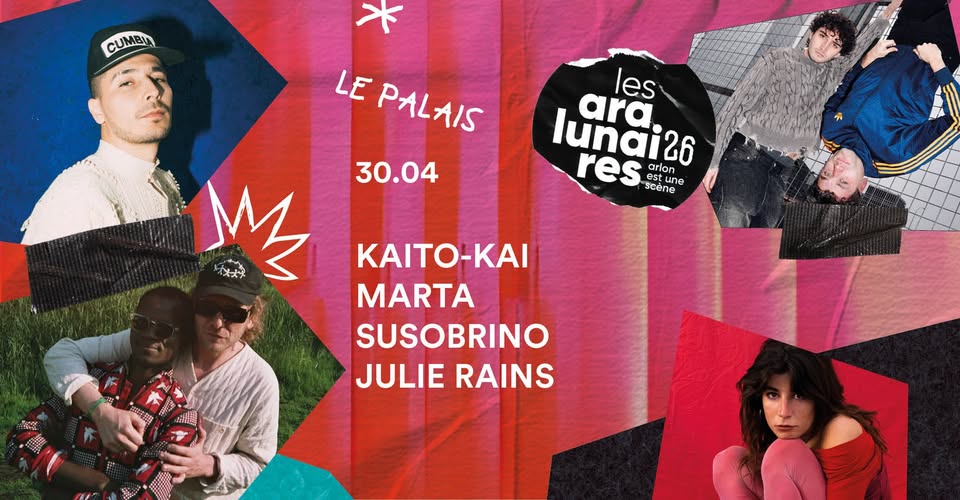 This line-up brings together Kaito-Kai, marta, Susobrino and Julie Rains as part of the Les Aralunaires 2026 festival in Arlon. Kaito-Kai offers a fusion of acid house, italo and percussive rhythms, featuring the energy of Kaito Winse and Kai Hugo. Marta combines techno with acoustic music in a minimal, progressive live show blending violin, drums and electronic sounds. Susobrino, inspired by Latin American rhythms, pays tribute to the region’s musical traditions in each performance. Julie Rains, known from the duo Juicy, develops a solo universe mixing soul, electronic and jazz, collaborating with Rowan Van Hoef. The event promises immersive and hybrid musical experiences.