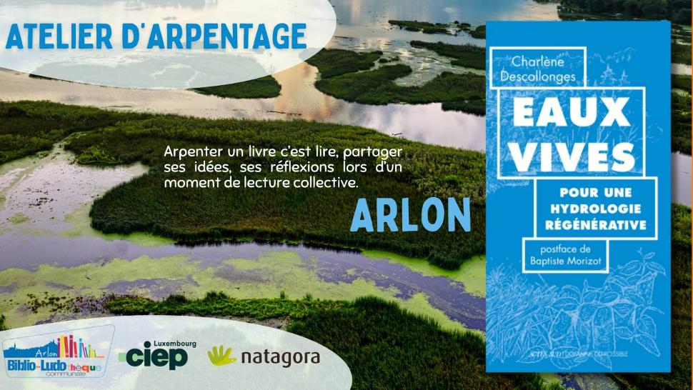 CIEP Luxembourg and the Arlon library are offering a collective reading session (arpentage) of the book “Eaux vives. For a Regenerative Hydrology” by Charlène Descollonges. The arpentage method is a collective reading process, allowing participants to share and discuss sections of the book together. The book deals with regenerative hydrology and a new approach to water, highlighting ancestral knowledge and practices.