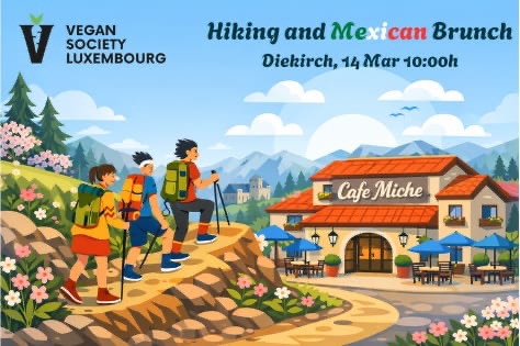• 2026-03-14 10:00:00 2026-03-14 14:00:00 Europe/Paris Hike and Brunch @CafeMiche in Diekirch Join us for a scenic hike and a delicious brunch to welcome the spring. The hiking route will be updated a week before the event. We'll start the day with a refreshing hike in and around Diekirch, enjoy the spring air, and then head to Cafe Miche for a relaxed brunch together. This community event is organized by the Vegan Society Luxembourg and everyone is welcome, whether you're vegan or not. The goal is simply to spend a lovely day outdoors, meet friendly people, and share a good meal. Well-behaved pets are welcome to join for the hike and at the restaurant. If you can no longer attend, please inform the organizer and cancel your ticket at least 24 hours before the event to help manage group size. 8 Rue de Brabant Diekirch, Luxembourg Vegan Society Luxembourg