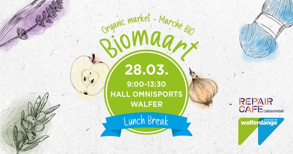 The next edition of "Biomaart" will be held next to the sports hall in Walferdange. In addition to healthy and fresh food, you will find soaps, plants, raised beds, and many other products. Lunch will also be available on site thanks to the "Bio Foodtruck".