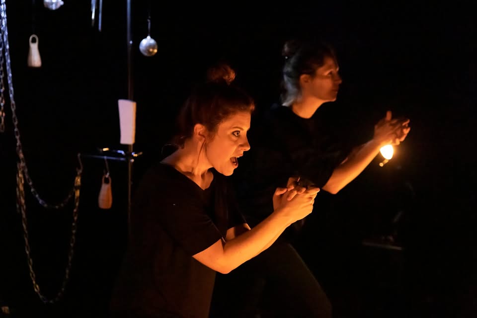 "Hair-Raising Stories" is a storytelling performance with music. The audience is invited to shiver together, experience emotions together, and immerse themselves in imaginary worlds. The show plays with light, shadow, and complete darkness, as well as several instruments and objects, to further stimulate imagination and simply and playfully visualize what is being told. Sound effects, music, and even silence encourage everyone's imagination, enabling each individual to create their own mental worlds. The public sits close to the stage for a better immersion.