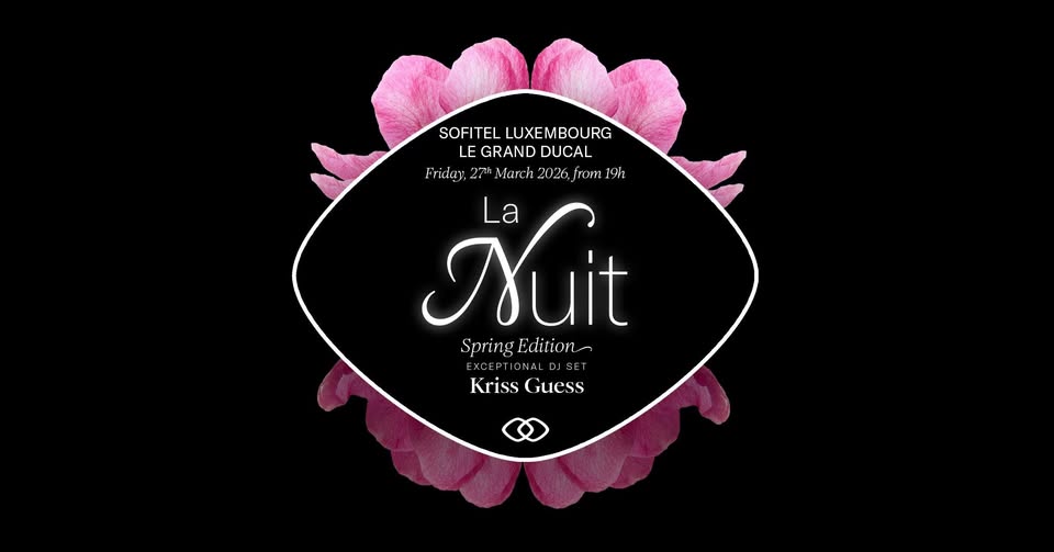 • 2026-03-27 19:00:00 2026-03-27 20:00:00 Europe/Paris La Nuit by Sofitel Spring Edition Join us for La Nuit by Sofitel – Spring Edition, from 7 PM to 1 AM, featuring an exceptional DJ set by Kriss Guess, with an opening performance by Rico Vibes. Kriss Guess, iconic figure of the Parisian scene, began her career 12 years ago with the Electrochic label and has since performed at some of the most prestigious clubs and international events. She is also founder of MK Agency and artistic director of Bristol After Dark at Le Bristol Paris, as well as Loulou Groupe, which is expanding internationally. In 2022, she moved into music production. Enjoy free appetizers by Chef Yann Castano from 7pm to 9pm. A FASHION dress code applies for this event. Guest entry will be strictly observed. 40 boulevard d'Avranches, 1160 Luxembourg, Luxembourg Sofitel Luxembourg Le Grand Ducal