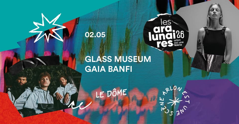 • 2026-05-02 20:00:00 2026-05-02 23:45:00 Europe/Paris Glass Museum, Gaia Banfi | Aralunaires 2026 Glass Museum is a leading figure in the Brussels nu-jazz scene since 2016, offering immersive and organic music blending jazz and electronic sounds, notably with their album "4N4LOG CITY". The bass-piano-drums trio delivers an original groove and post-modern energy. Gaia Banfi, a unique voice on the Italian art-pop and electronic scene, creates poetic, atmospheric and innovative music, influenced by ambient music and acoustic textures, especially on her album "La Maccaia". Place Léopold, 6700 Arlon, Belgique Les Aralunaires