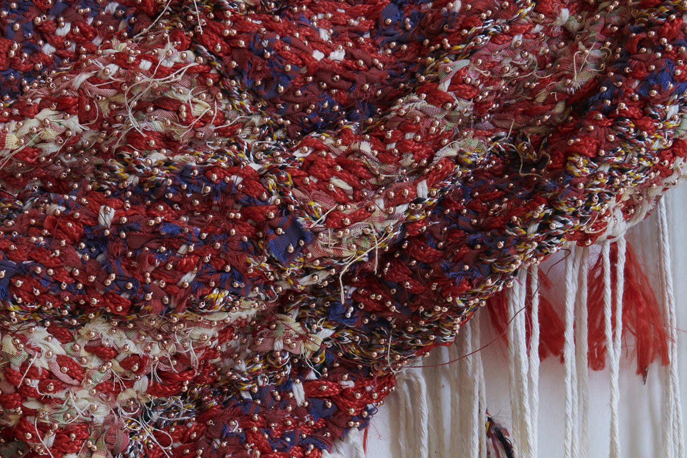 Igshaan Adams (1982, Cape Town) creates compositions whose layers blur the boundaries between textile art, sculpture, and performance. His interest in weaving stems from the woven baskets collected by his family during his childhood. His artistic practice is deeply shaped by an intimate and intuitive experience of textiles. Emerging from a collaborative process, Adams's work draws on memory, spirituality, and shared stories, transforming neglected materials and objects from daily life in Cape Town into reflections on identity, value, and belonging.