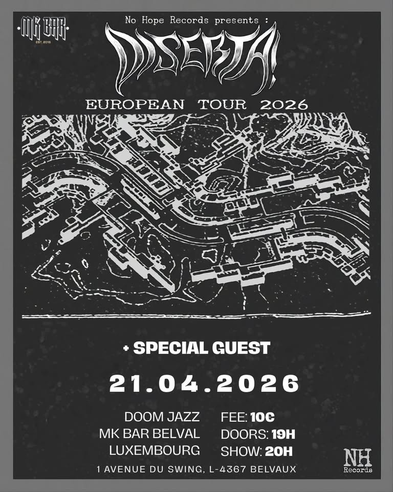 Deep from the underground, DISERTA! is a collision of two musical worlds: the heaviness of Doom/Stoner & Jazz! + special guest (to be confirmed). You don’t want to miss this one!