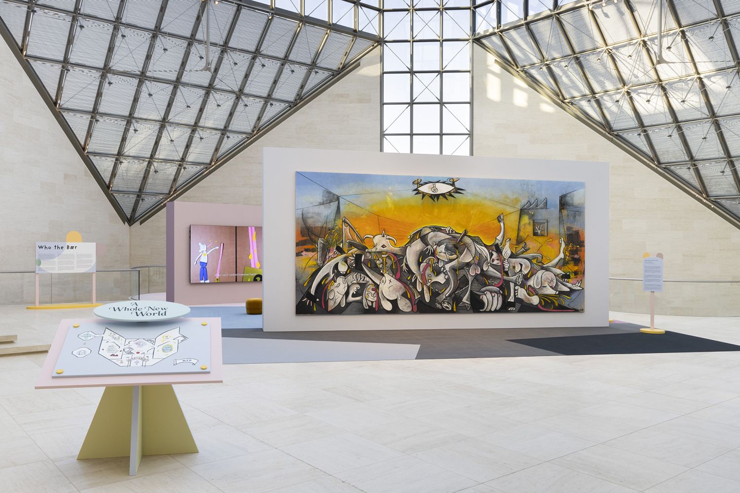 Recurring motifs such as iconic figures, cartoons, theme parks, mass tourist sites and museums, show his fascination with the ways in which society represents, exaggerates or invents images of itself. He looks under these seemingly seductive surfaces to reveal a poignant question: why do we long for authenticity even as we build ever more artificial realities?