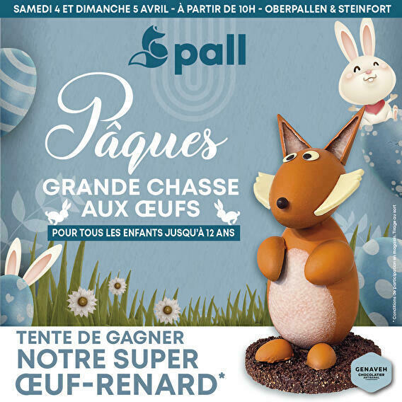 Once the mission is accomplished, head to the checkout of the toy area in Oberpallen or that of the Pallcafé in Steinfort to collect a surprise: a small bag of Genaveh chocolate eggs as well as a €5 gift voucher to use in the toy areas of the Pall stores in Oberpallen and Steinfort.