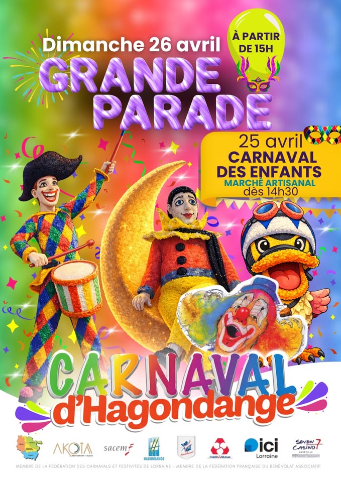 The Hagondange Carnival, organized by the Société Carnavalesque with the municipality, invites everyone to a festive weekend! This event gathers young and old alike for various entertainments and is a strong tradition in eastern France. This edition will include: