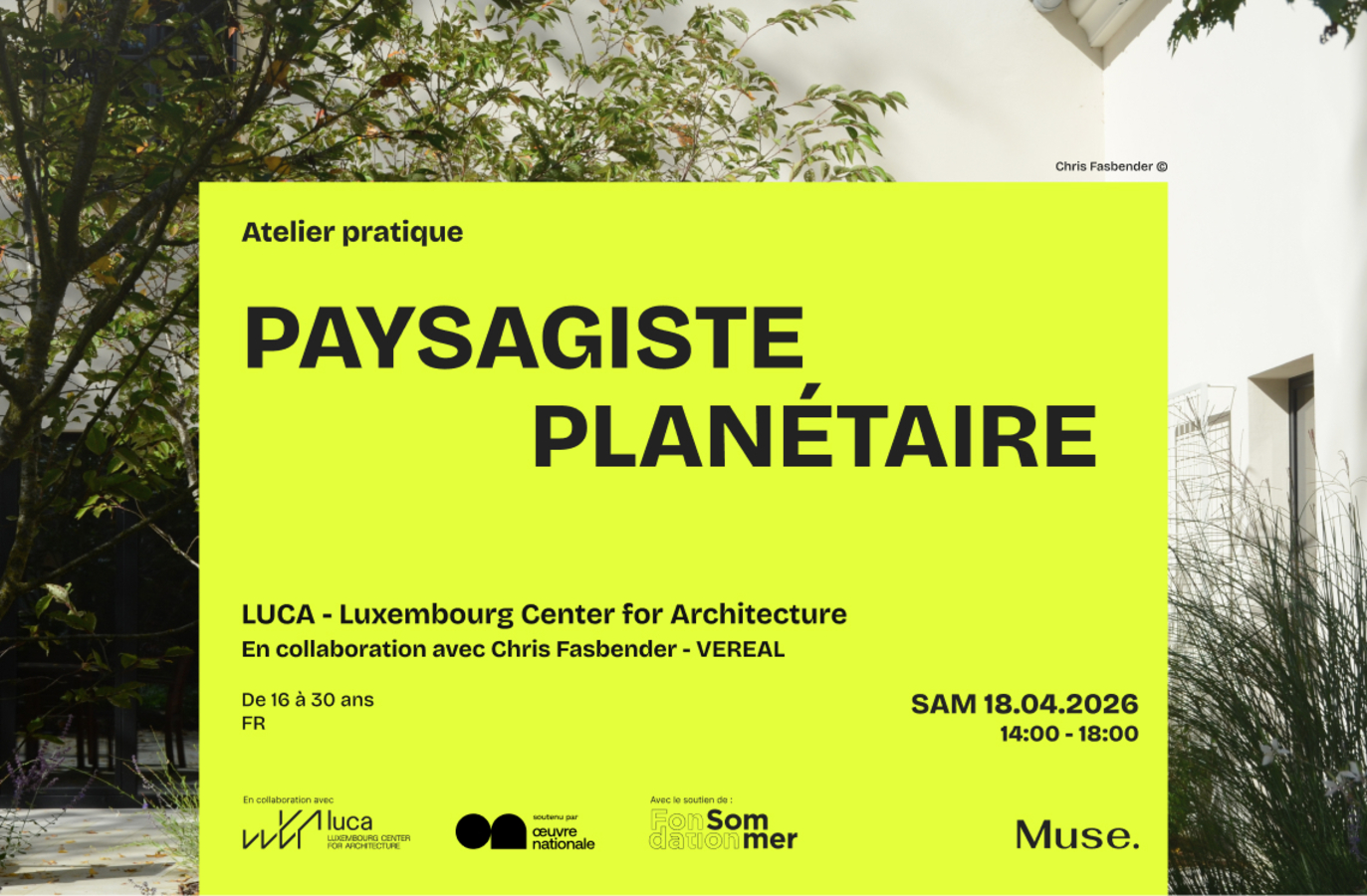 • 2026-04-18 14:00:00 2026-04-18 18:00:00 Europe/Paris Planetary Landscaper Join the Planetary Landscaper workshop and discover how small design choices can support biodiversity and transform your everyday environment. This workshop invites you to explore ecological landscaping and transform any space (balcony, courtyard, or garden) into a living, sustainable, and inspiring ecosystem. Inspired by Gilles Clément, who describes the biosphere as a "planetary garden" where everyone becomes a "planetary gardener," it shows how simple, local actions can support global biodiversity. After an introduction to the basics of landscaping—functionality, design, and biodiversity—you will work as a team to design a model ecological garden based on a given role and context. The workshop concludes with project presentations followed by a personal reflection: what concrete action can I implement at home? The aim is to make landscaping and biodiversity immediately applicable in daily life. This workshop is part of Studio Lokal, a dynamic initiative by Muse ASBL that brings together designers, artists, and local professionals to explore new trends, techniques, and opportunities in the creative sector. LUCA - Luxembourg Center for Architecture, 1 Rue de la Tour Jacob, 1831 Grund Luxembourg LUCA - Luxembourg Center for Architecture