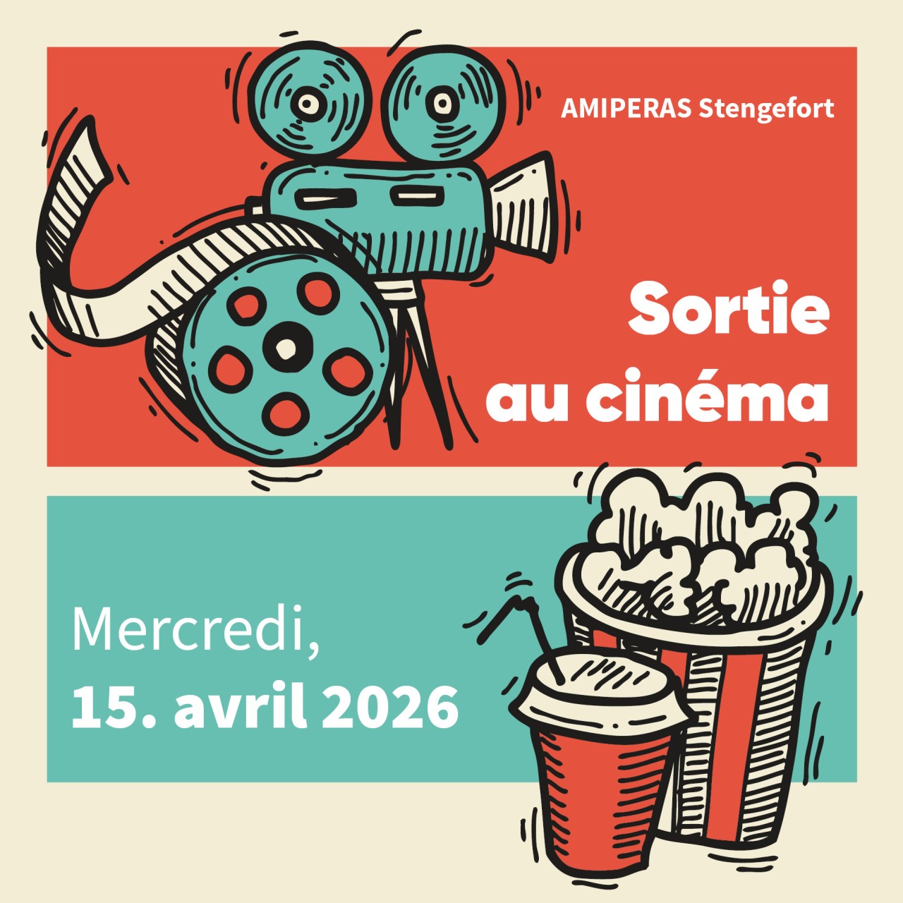 On Wednesday, 15 April 2026, Amiperas Stengefort is going to Kahler to see the film 'Ganzer halber Bruder' by Hanno Olderdissen. Everyone is welcome. The film is in German without subtitles. After the film, those who wish can enjoy a small snack at the cinema bar.