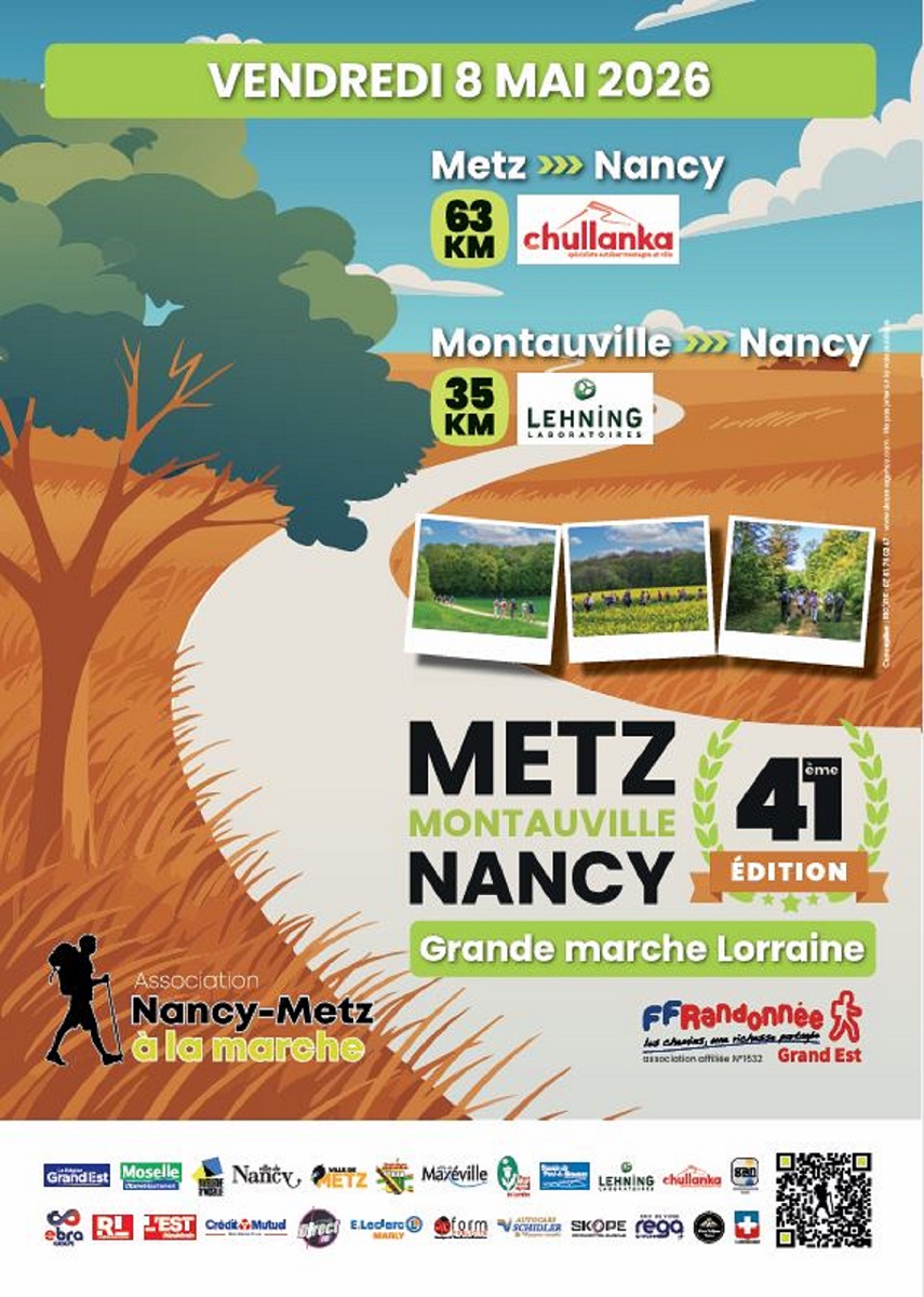 • 2026-05-08 05:00:00 2026-05-08 06:00:00 Europe/Paris Grand Lorraine Walk: Metz - Montauville - Nancy 41st edition of the Grand Lorraine Walk. Chullanka Metz, 2 Rte du Haut Gazon, 57160 Moulins-lès-Metz, France Agence Inspire Metz - Office de Tourisme