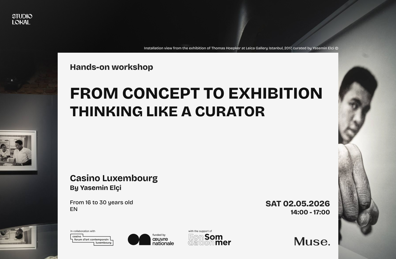 The workshop closes with a hands-on group exercise in which participants develop and present their own curatorial concept. Open to all creative disciplines and backgrounds, no prior experience in curation necessary. This workshop is part of Studio Lokal, a dynamic initiative by Muse ASBL, bringing together local designers, artists, and youth to explore trends, techniques, and opportunities in the creative industry. Ages 16–30.