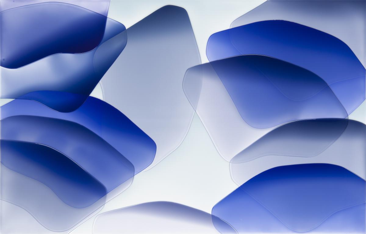 His epoxy paintings begin with images found online or from his own archives, processed by computer and then applied to canvas in successive layers. Playing with transparency and depth, their surfaces recall the smooth, shimmering colors of contemporary digital screens.