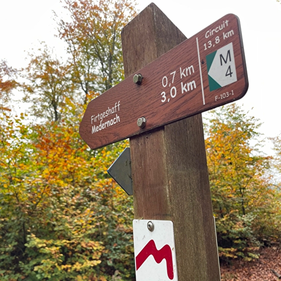Head out for a 14km walk full of surprises starting from Medernach! This varied trail takes you through forests, meadows, and charming villages, with a magnificent view of Fiels Castle in Larochette.