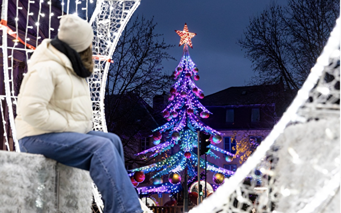 4 places not to miss: Anne Grommerch Place for the children's village and ice rink, Claude Arnoult Place for the treats, Place au Bois for Santa's bubble and the little train, and Saint-Maximin Place for the Christmas tree carousel 🎠