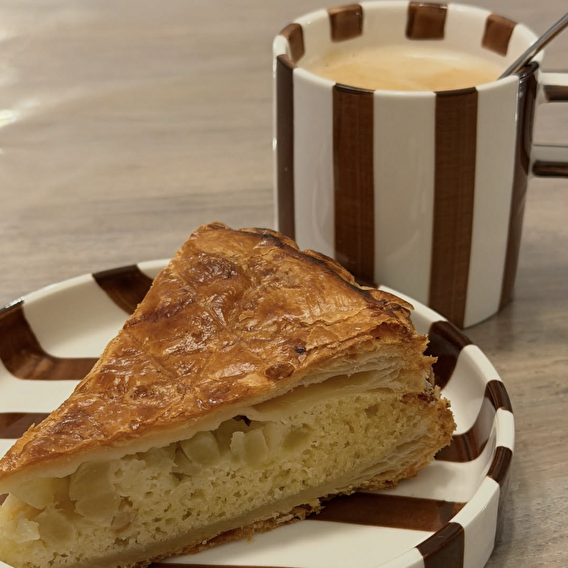 Frangipane, apple... everything is homemade, with flour labeled CRC (Culture Raisonnée Certifiée), for a galette that tastes good and respects your health. Artisanal work rewarded with the Certified Craftsmanship label, and by the title of best bakery-pastry of the province of Luxembourg 2024 🎉